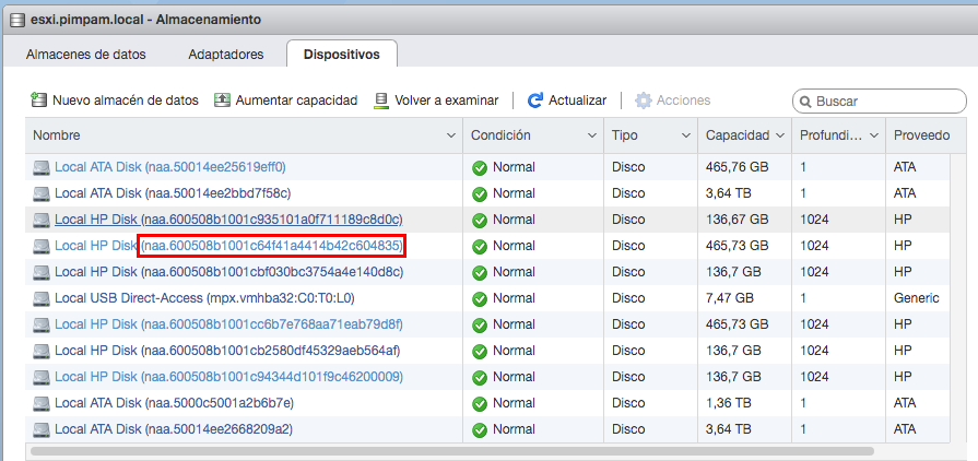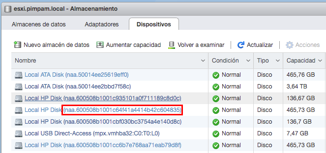 nombre dev esxi